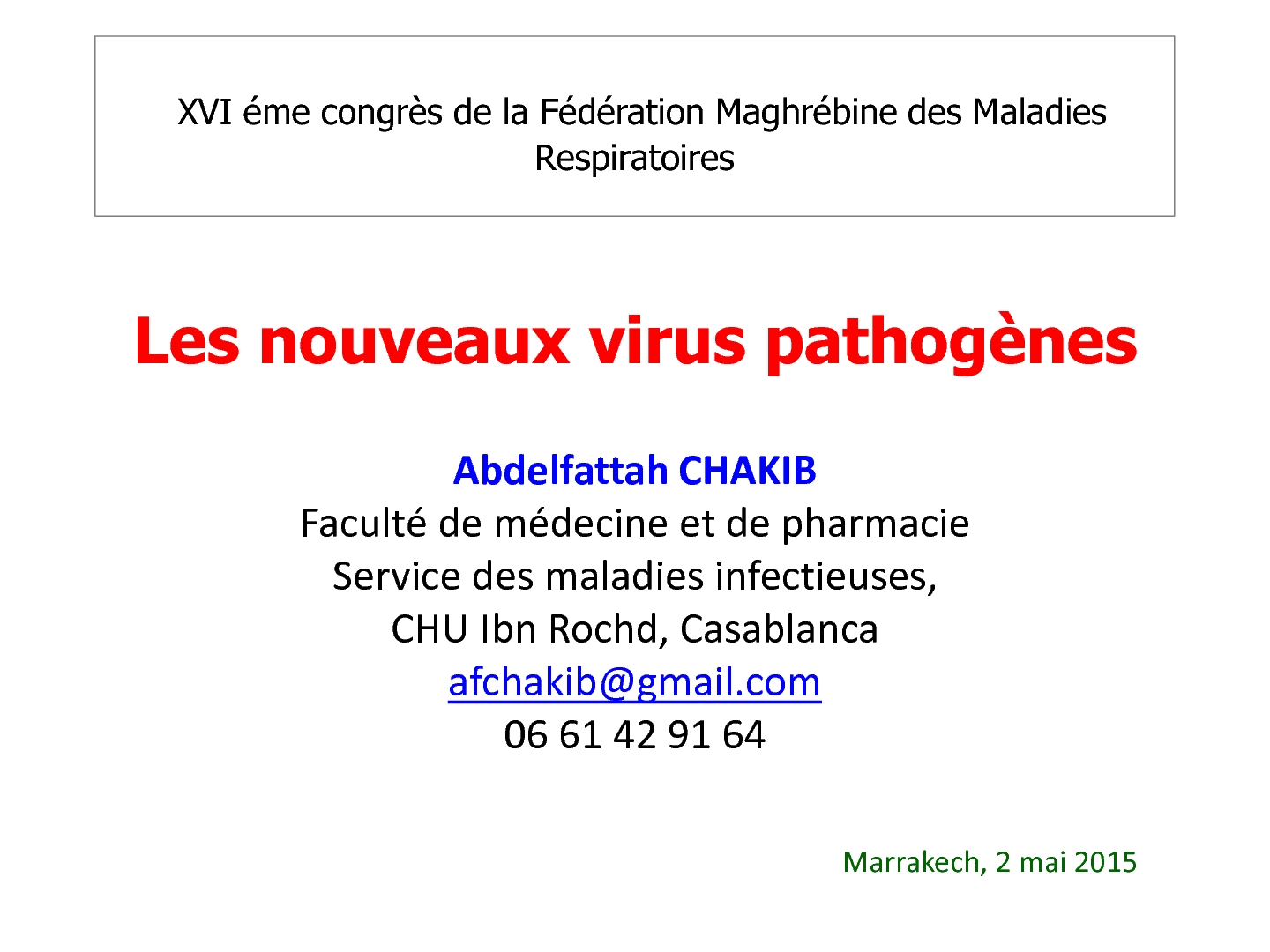Les nouveaux virus pathogènes. A. CHAKIB