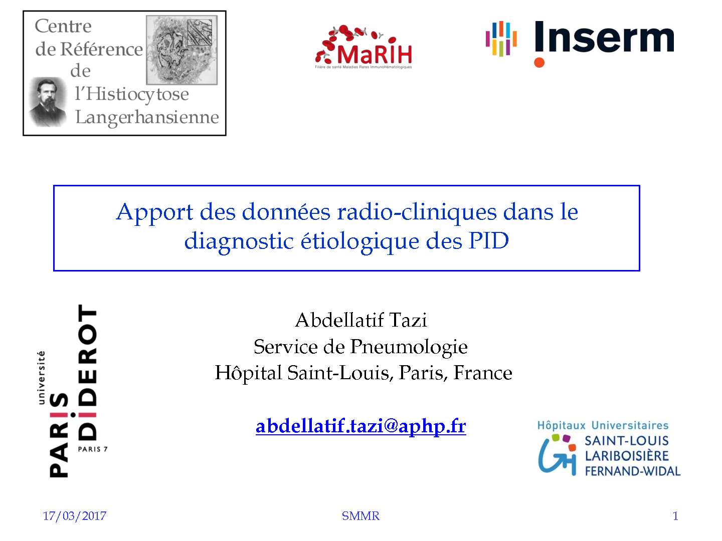 Apport des données radio cliniques dans le diagnostic étiologique des PID. A. TAZI (Paris)