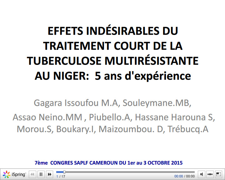 Effets indésirables du traitement court de la tuberculose multi résistante au Niger 5 ans d'expérience. MA Gagara Issoufou