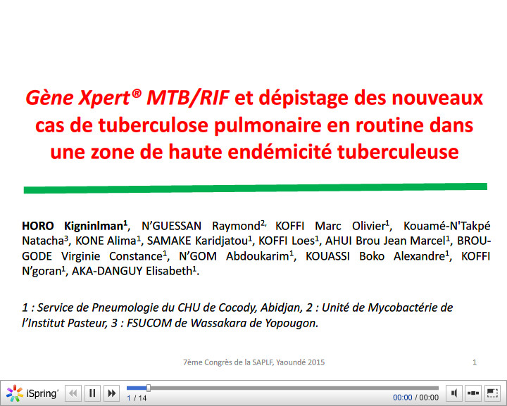 Gène Xpert® MTBRIF et dépistage des nouveaux cas de tuberculose pulmonaire en routine dans une zone de haute endémicité tuberculeuse. K. Horo